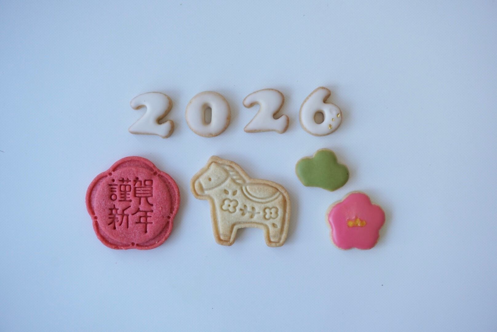 干支、梅、富士山、2026などのお正月モチーフのクッキーを中心に、